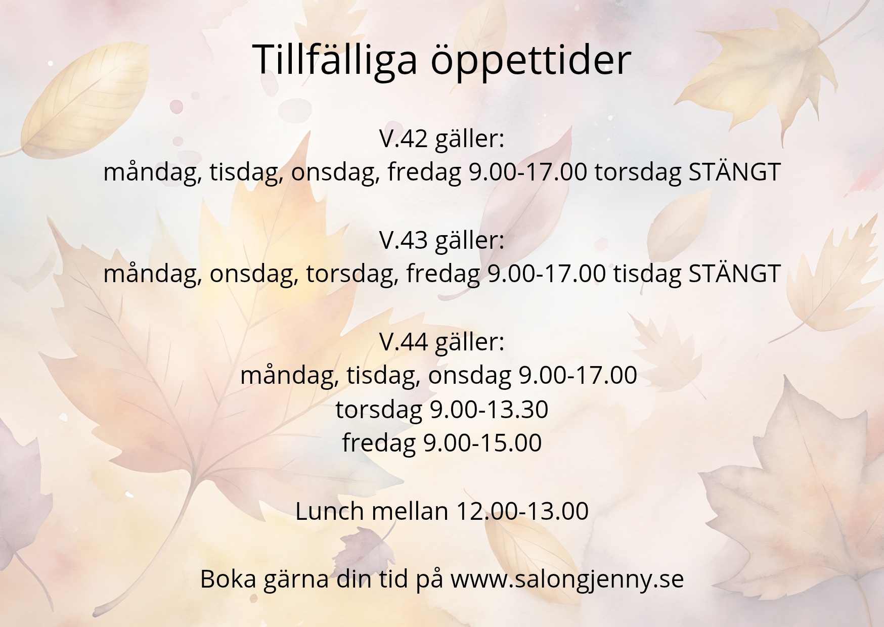 Välkommen till oss på Salong Jenny. Här kan du få allt från klippning, permanent, färgning, slingor och öronhåltagning.
